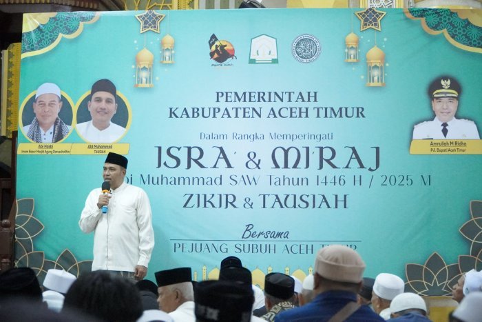 LM – Di Peringatan Isra’ Mi’raj Nabi Muhammad SAW 1447 Hijriah yang digelar di Mesjid Agung Darus Shalihin, Kecamatan Idi Rayeuk, Aceh Timur, pada Minggu, 26 Januari 2025, Penjabat Bupati Aceh Timur, Amrullah M Ridha, dalam sambutannya menyampaikan pesan penting tentang makna dari peristiwa Isra’ Mi’raj. Menurutnya, peristiwa tersebut bukan hanya sejarah, tetapi juga momentum untuk memperkuat keimanan umat Islam, meningkatkan taqwa, serta mempererat silaturahmi di antara sesama.
