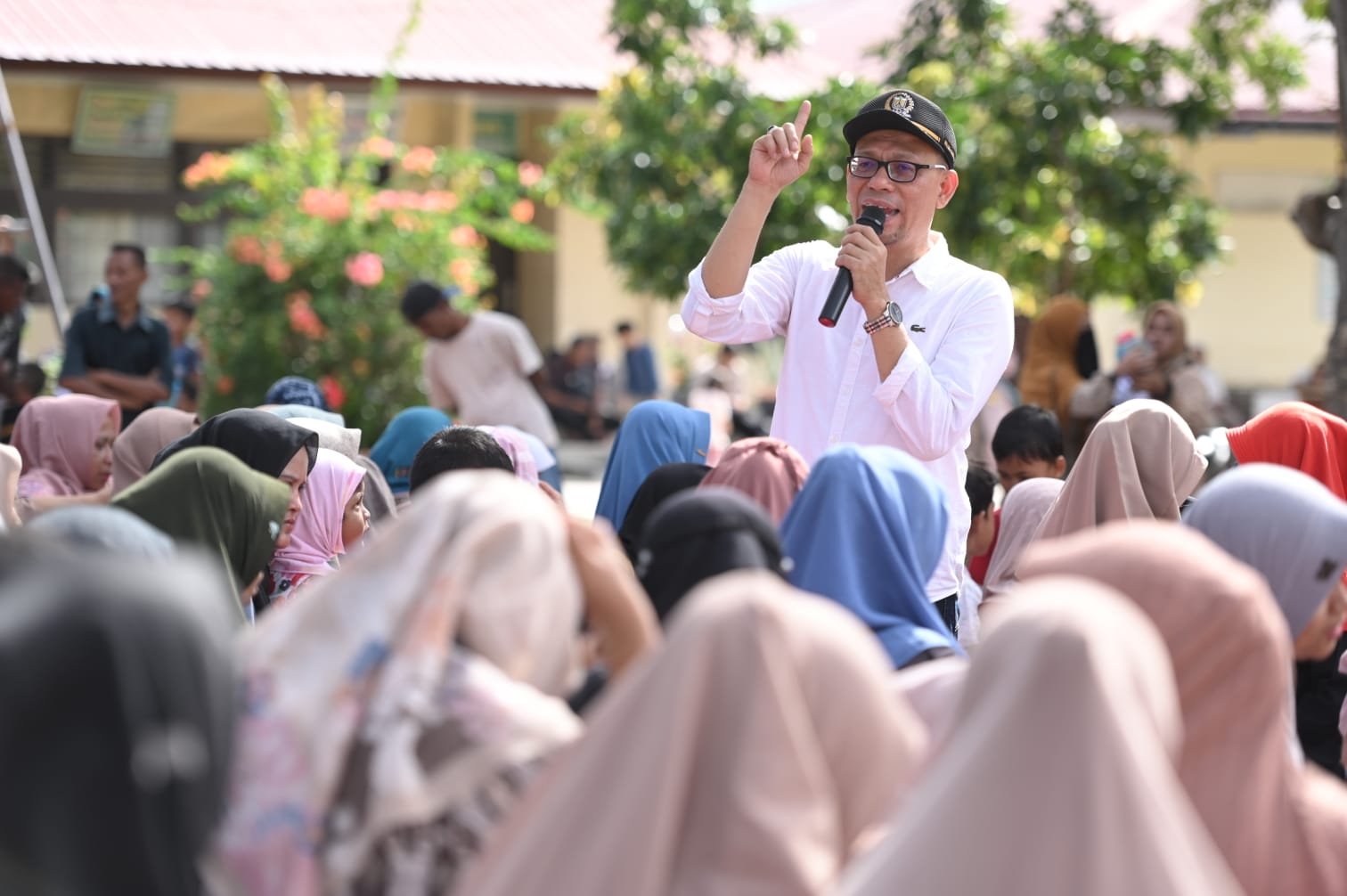 LM-Anggota Dewan Perwakilan Rakyat Kota (DPRK) Banda Aceh Dr Musriadi SPd MPd dari Fraksi Partai Amanat Nasional (PAN) memotivasi para siswa – siswi kurang mampu dan anak yatim di Kecamatan Ulee Kareng, Jumat (01/12/2023).