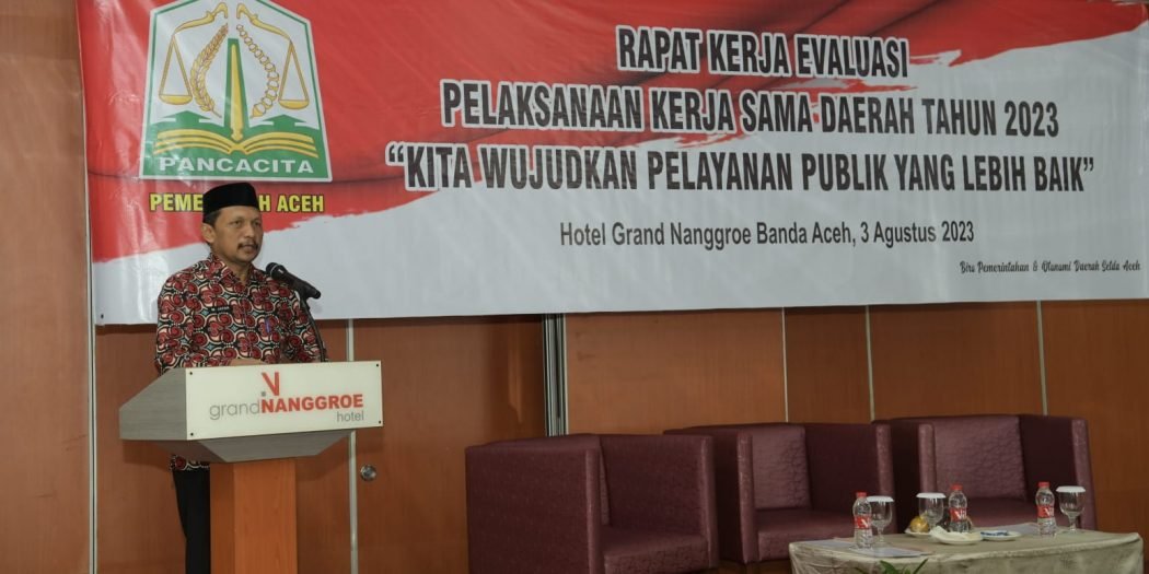 LM – Masa depan kerjasama daerah di Aceh kembali diwarnai oleh semangat baru saat Asisten Pemerintahan, M Jafar, membuka Rapat Kerja (Raker) Evaluasi Pelaksanaan Kerja Sama Daerah Tahun 2023. Acara yang diikuti oleh seluruh pejabat fungsional dari Satuan Kerja Perangkat Aceh (SKPA) ini diselenggarakan dengan tema “Kita Wujudkan Pelayanan Publik yang Lebih Baik”. Kamis, 3 Agustus 2023.