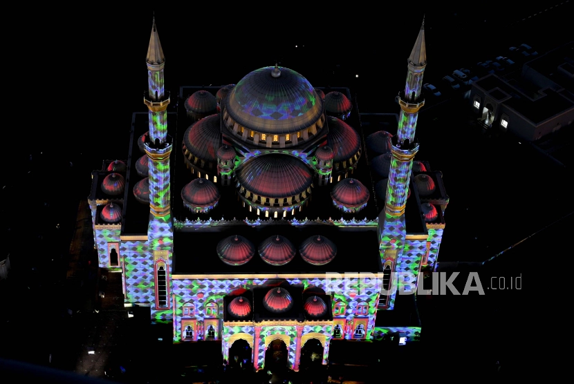 Pemandangan umum Masjid Al Noor selama Festival Cahaya Sharjah di emirat Teluk Sharjah, Uni Emirat Arab, 13 Februari 2022. Badan Astronomi UEA Perkirakan Ramadhan Jatuh 23 Maret