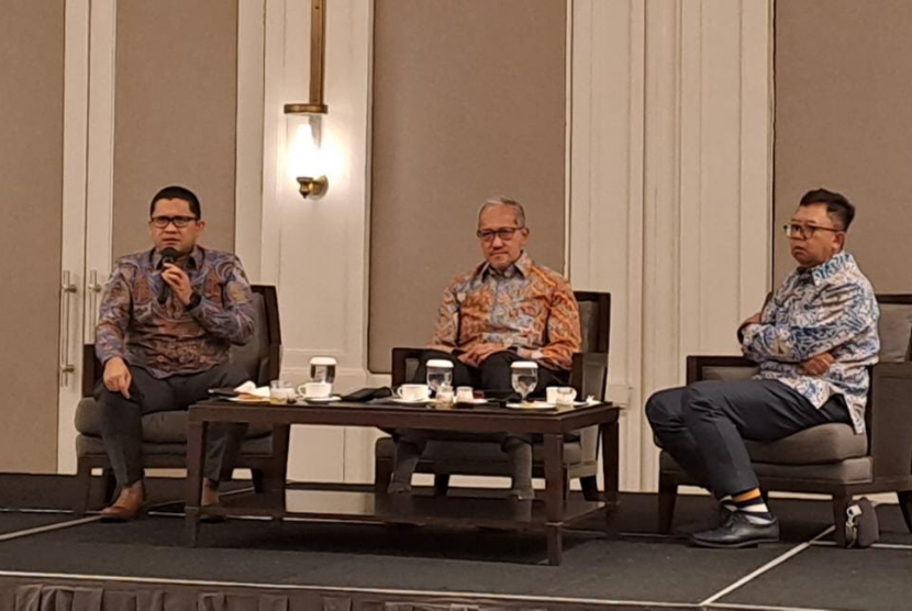 Kepala Badan Kebijakan Fiskal (BKF) Febrio N Kacaribu (kiri) saat menghadiri media briefing ASEAN Finance Minister and Central Bank Governor Meetings di Bali, Senin (27/3/2023).