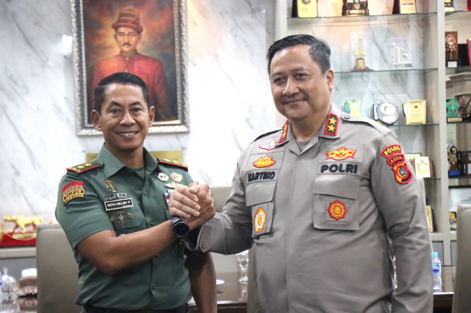 LM – Pangdam IM, Mayjen TNI Novi Helmy Prasetya, S. I. P., M. I. P., menyambut dengan penuh kehormatan kedatangan Kapolda Aceh, Irjen Pol. Achmad Kartiko, S. I. K., M. H, beserta rombongannya, di Makodam IM pada pagi yang cerah, Selasa, 10 Oktober 2023.