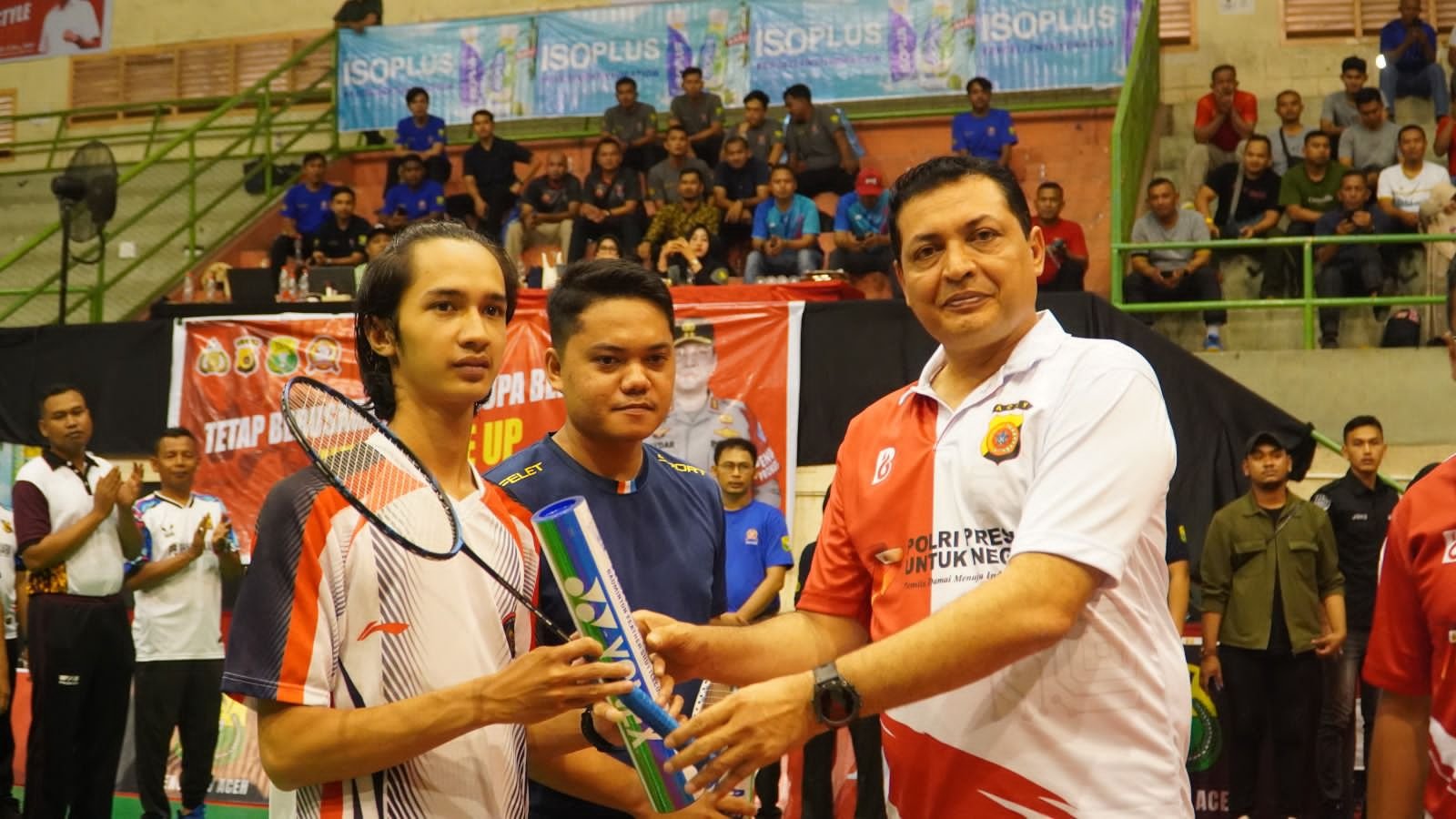 LM – Kapolda Aceh Irjen Ahmad Haydar bersama Wakapolda Brigjen Syamsul Bahri membuka Turnamen Badminton Kapolda Aceh Cup Tahun 2023 di GOR KONI Aceh, Kota Banda Aceh, Kamis, 13 Juli 2023. Turnamen ini diadakan sebagai bagian dari perayaan HUT ke-77 Bhayangkara.