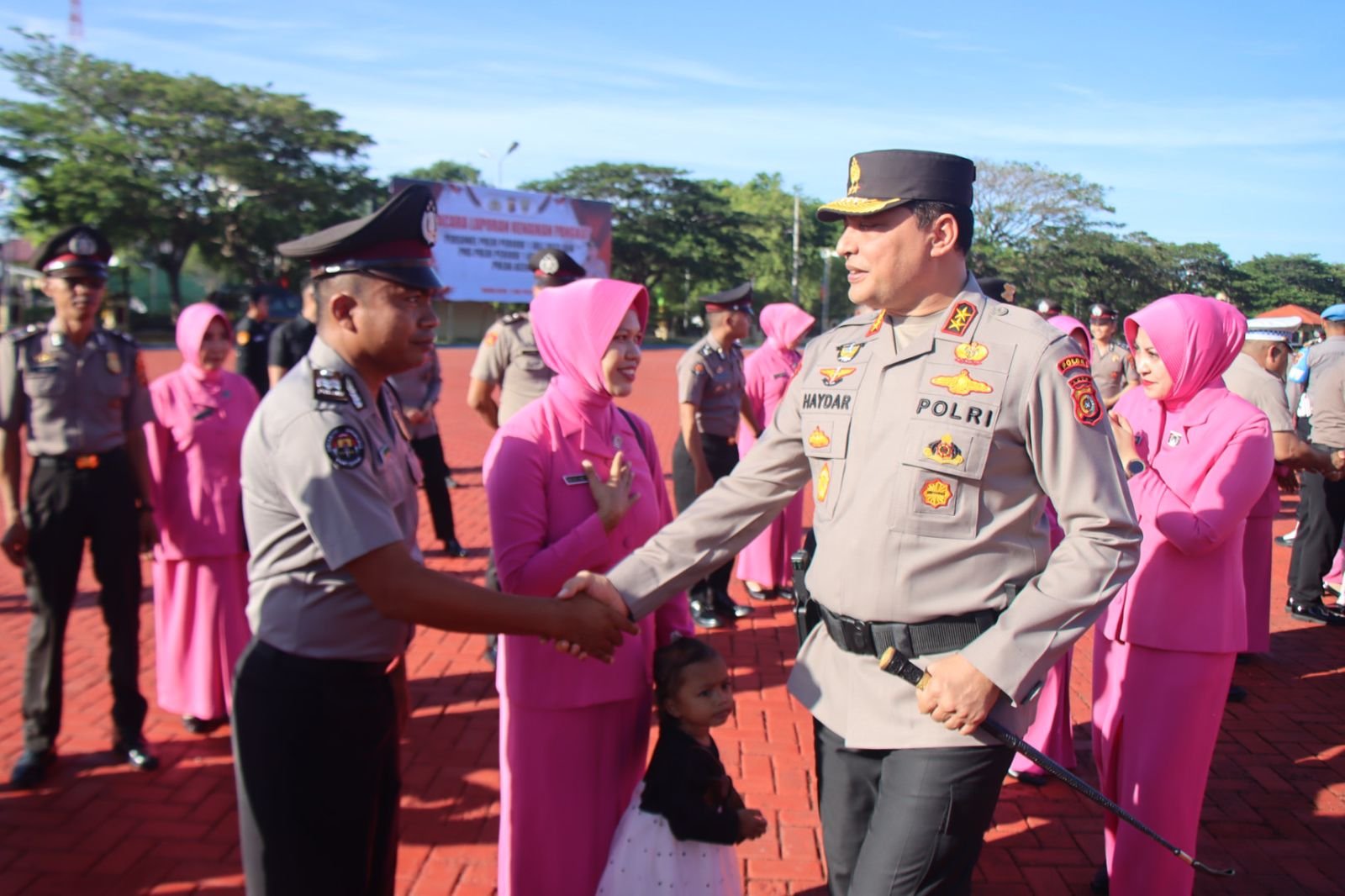 Setelah upacara korp raport, Kapolda Aceh beserta pejabat utama Polda Aceh memberikan ucapan selamat kepada para personel Polri dan ASN yang naik pangkat dengan menyalami mereka satu persatu. Ucapan selamat ini sebagai bentuk apresiasi dan penghargaan atas dedikasi serta kerja keras yang telah ditunjukkan oleh para personel tersebut.