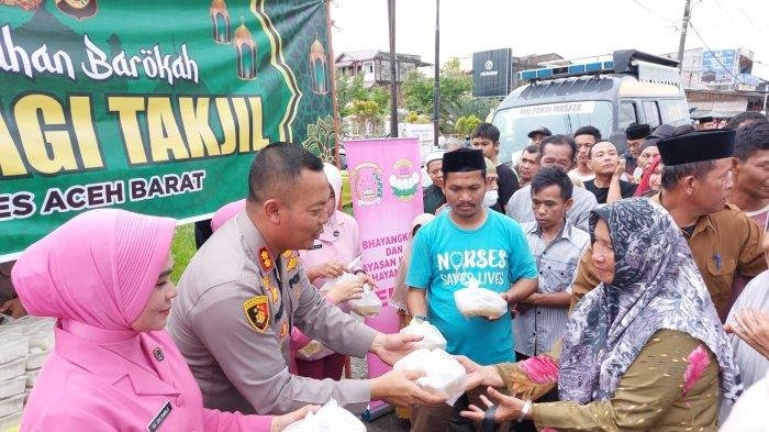 “Hari ini kita bersama Bhayangkari membagi-bagikan takjil kari kambing sebanyak 200 paket kepada masyarakat yang melintas di jalan raya di Meulaboh yang merupakan pusat ibuKota Kabupaten Aceh Barat,” kata Kapolres.