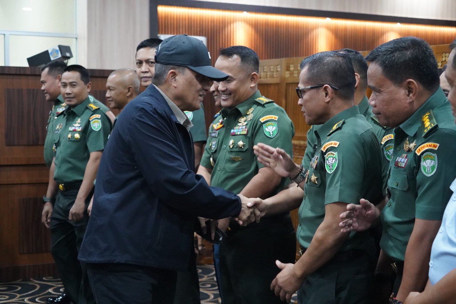 Prosesi penyambutan berlangsung secara khidmat. Lantunan sholawat dari seorang ustaz beserta rombongan menggema menyambut kedatangan rombongan Pangdam, menciptakan suasana religius yang menyentuh hati dan mengukuhkan nilai-nilai spiritual dalam kebersamaan keluarga besar Kodam IM.