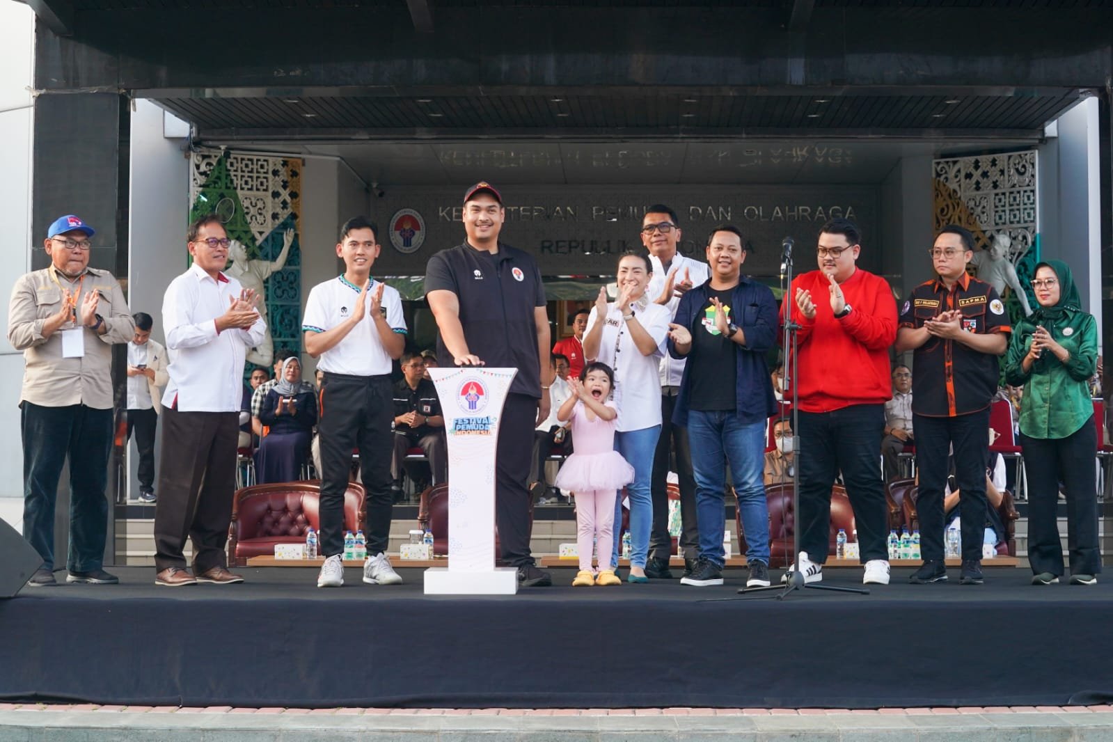 Dengan antusiasme yang membara, Menpora Dito menutup sambutannya dengan menekan sirene bersama jajaran deputi Kemenpora dan para pimpinan OKP, secara resmi membuka Festival Pemuda Indonesia.