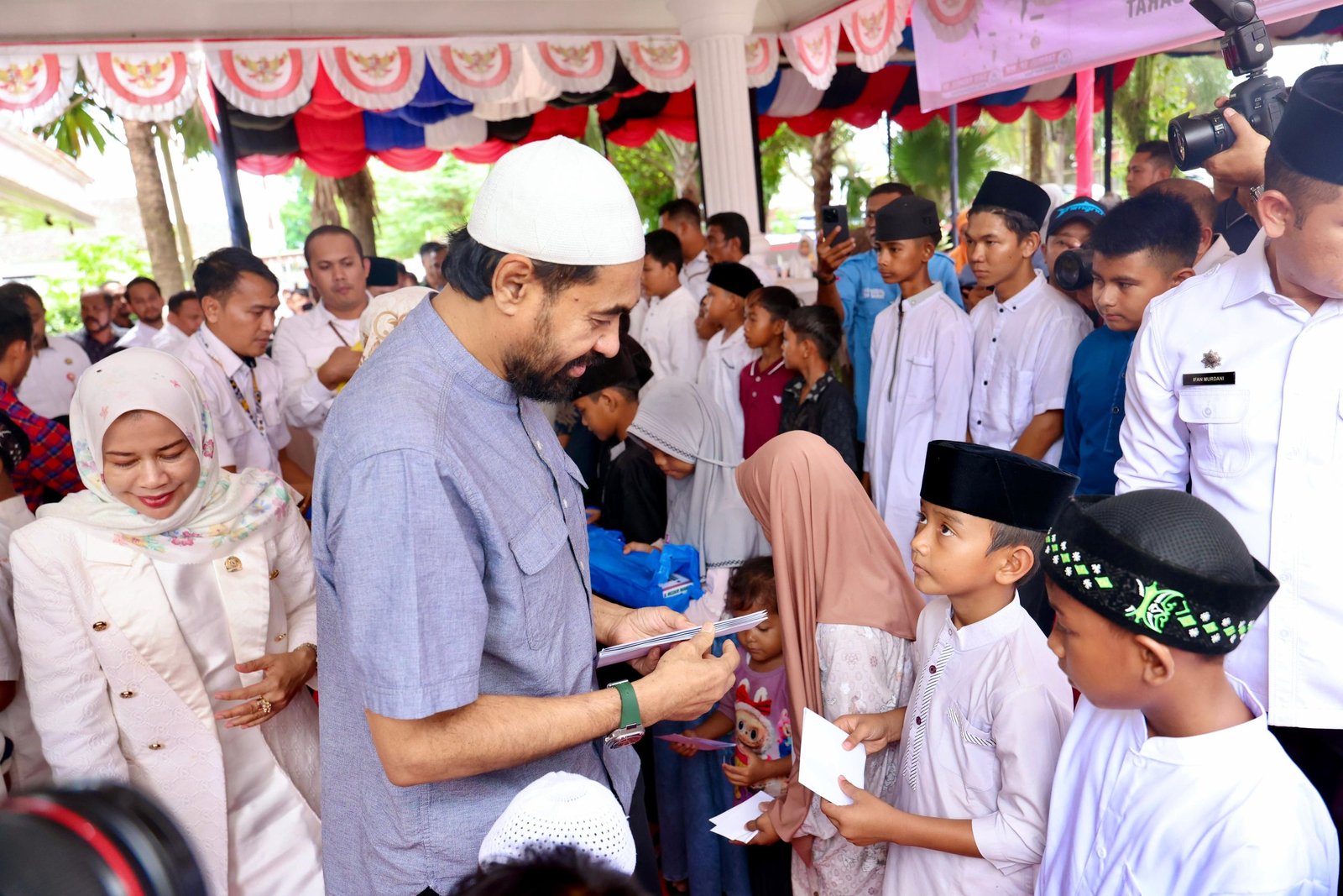 Dalam acara tersebut, Mualem secara langsung menyerahkan santunan kepada anak-anak yatim berupa sejumlah uang dan bingkisan. Penyerahan dilakukan satu per satu, dengan didampingi oleh Bupati Tarmizi dan Aiyub Abbas.