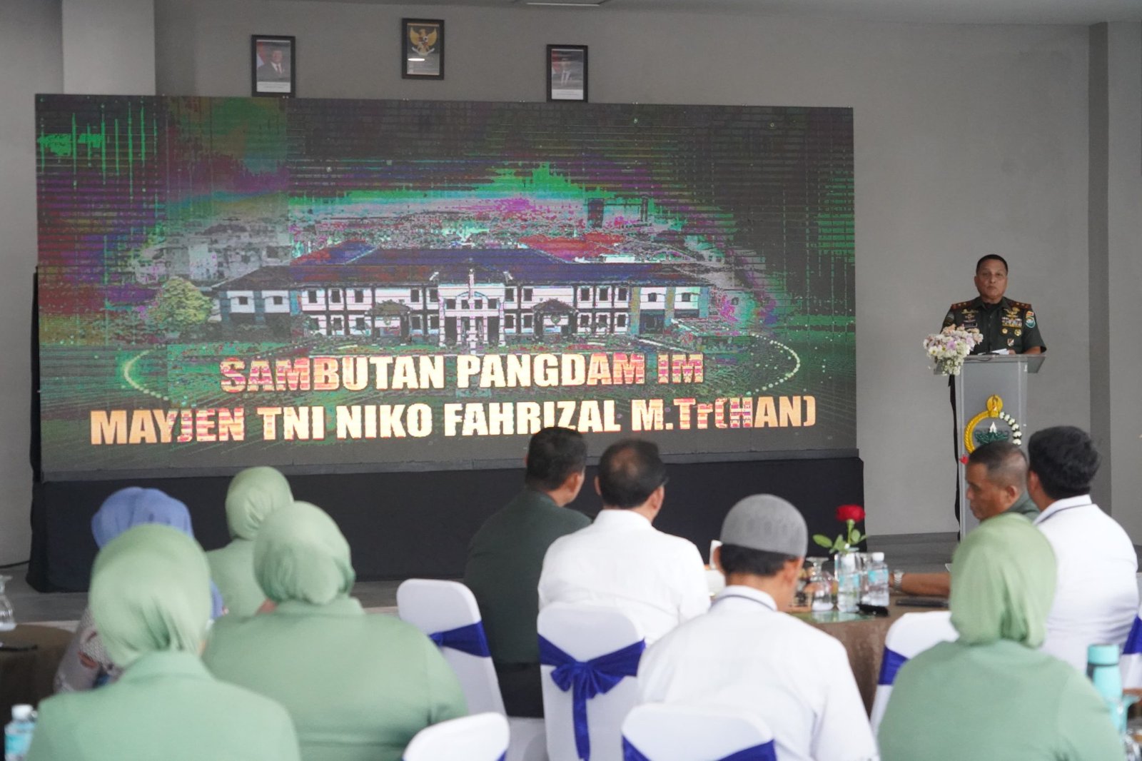 LM – Panglima Komando Daerah Militer Iskandar Muda (Pangdam IM) Mayor Jenderal TNI Niko Fahrizal, M.Tr(Han)., menghadiri pembukaan Pelatihan Berbasis Kompetensi (PBK) Non Boarding Batch I 2025 dan acara Penandatanganan Perjanjian Kerja Sama (PKS) sekaligus memberikan pelatihan vokasi dan produktivitas kepada anggota Persit Kartika Chandra Kirana (KCK) yang suaminya akan memasuki masa pensiun. Acara tersebut berlangsung di Gedung Fashion Technology, Balai Pelatihan Vokasi dan Produktivitas (BPVP) Banda Aceh, Kementerian Ketenagakerjaan Aceh, Geuceu Komplek, Kota Banda Aceh, pada Rabu (22/01/2025) siang.