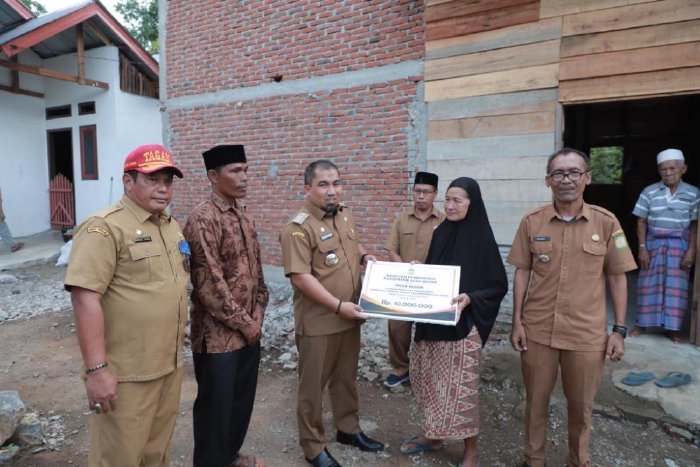 LM – Penjabat (PJ) Bupati, Muhammad Iswanto SSTP MM, dan Kepala Dinas Sosial, Bahrul Jamil SSos MSi, memberikan bantuan kepada 12 warga yang tengah berjuang melewati masa-masa sulit. Para warga ini telah terdampak berbagai musibah, mulai dari kebakaran, bencana alam, hingga kerusakan parah akibat angin kencang yang menerpa daerah ini. Selasa, 10 Oktober 2023.