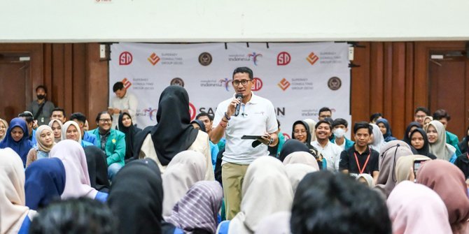 Sebagai pengusaha, Sandiaga Uno mengatakan generasi muda Indonesia membutuhkan pelatihan digitalisasi untuk membuat konten-konten kreatif dalam meningkatkan omzet penjualan. Dengan begitu, Tahun 2024 target 4,4 juta lapangan kerja baru dapat terealisasikan.