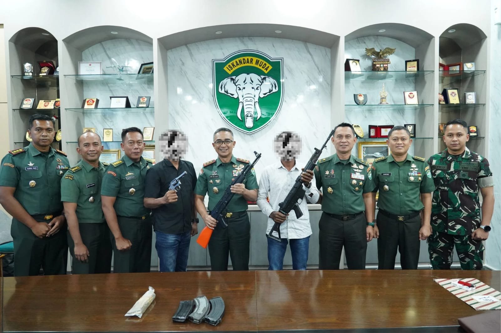 Dalam kesempatan itu, Pangdam didampingi Kasdam IM, Asintel Kasdam IM, dan Asops Kasdam IM. Orang tua dari salah satu anak didik hadir secara langsung dan dengan penuh kesadaran menyerahkan senjata api beserta amunisi kepada Pangdam Iskandar Muda.