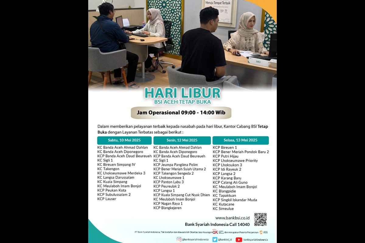 LM — PT Bank Syariah Indonesia, Tbk. (BSI) Aceh terus meningkatkan layanan kepada nasabah, salah satunya mrngoperasikan layanan weekend banking di 53 Kantor Cabang selama Mei 2025.