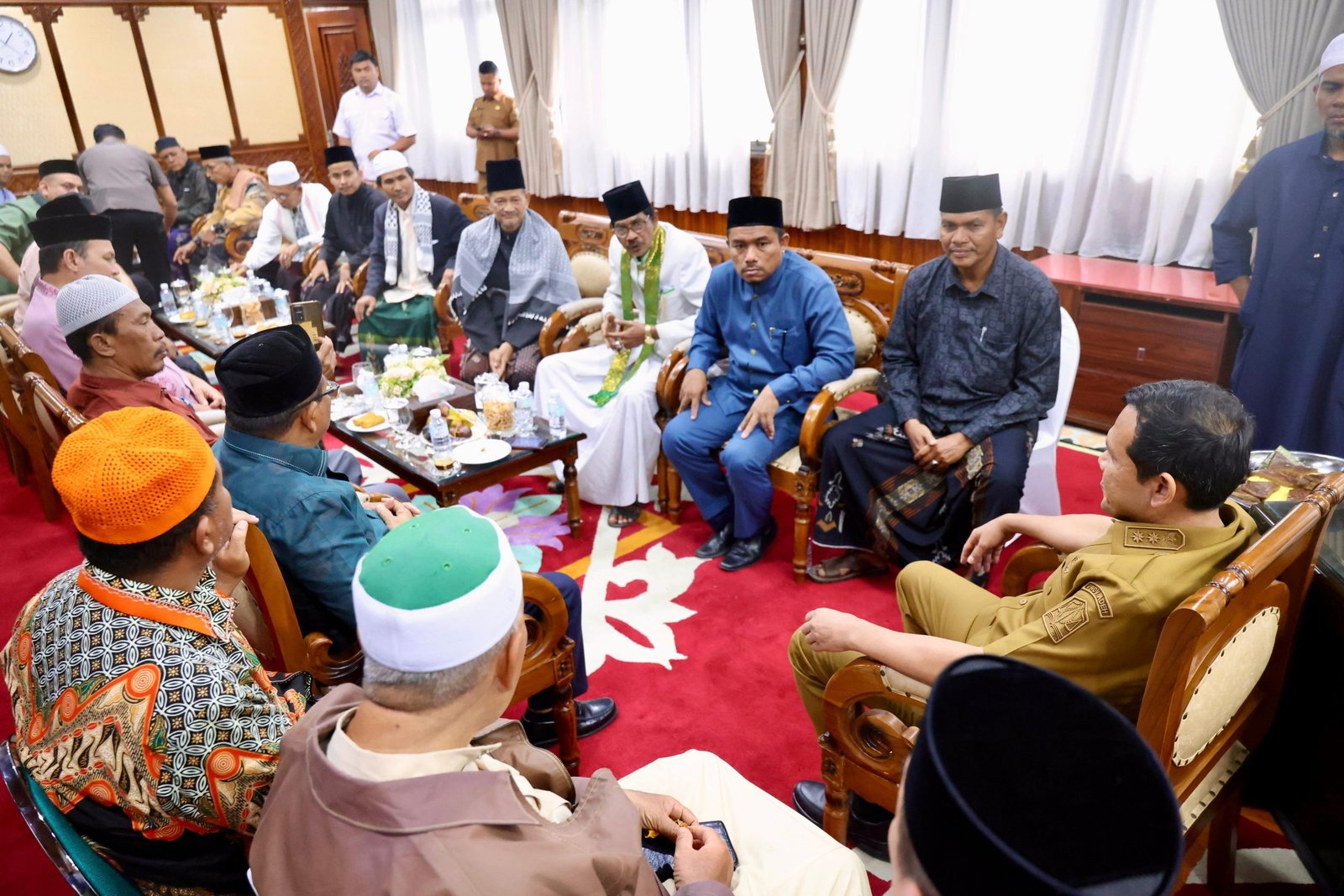 LM – Ruang Rapat Wakil Gubernur Aceh sedikit berbeda hari ini. Sejumlah ulama Aceh berkumpul. Do’a-do’a dipanjatkan dalam suasana khidmad oleh para Ulama dan para Tokoh Politik. Prosesi adat pun menutup acara pelepasan keberangkatan Wakil Gubernur Aceh Fadhlullah, ke Tanah Suci Mekah, Selasa, 27 Mei 2025.