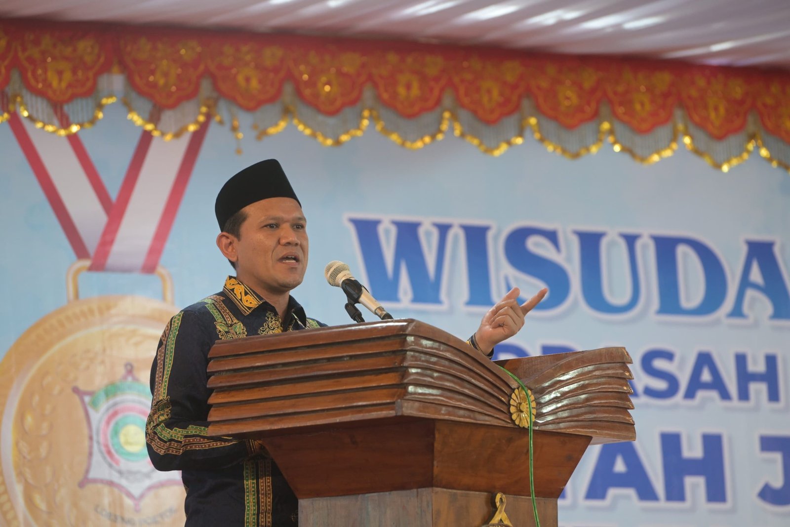 LM – Wakil Gubernur Aceh, H. Fadhlullah, SE., didampingi Istri, menghadiri wisuda ke-33 santri Madrasah Tsanawiyah dan Madrasah Aliyah Dayah Jeumala Amal, Minggu, 11 Mei 2025. Acara yang berlangsung di kompleks dayah tersebut dihadiri oleh ratusan santri, wali santri, dan alumni dari berbagai angkatan. Kehadiran Fadhlullah—alumnus angkatan ke-7 Jeumala Amal—disambut hangat oleh pimpinan dayah dan dewan guru.