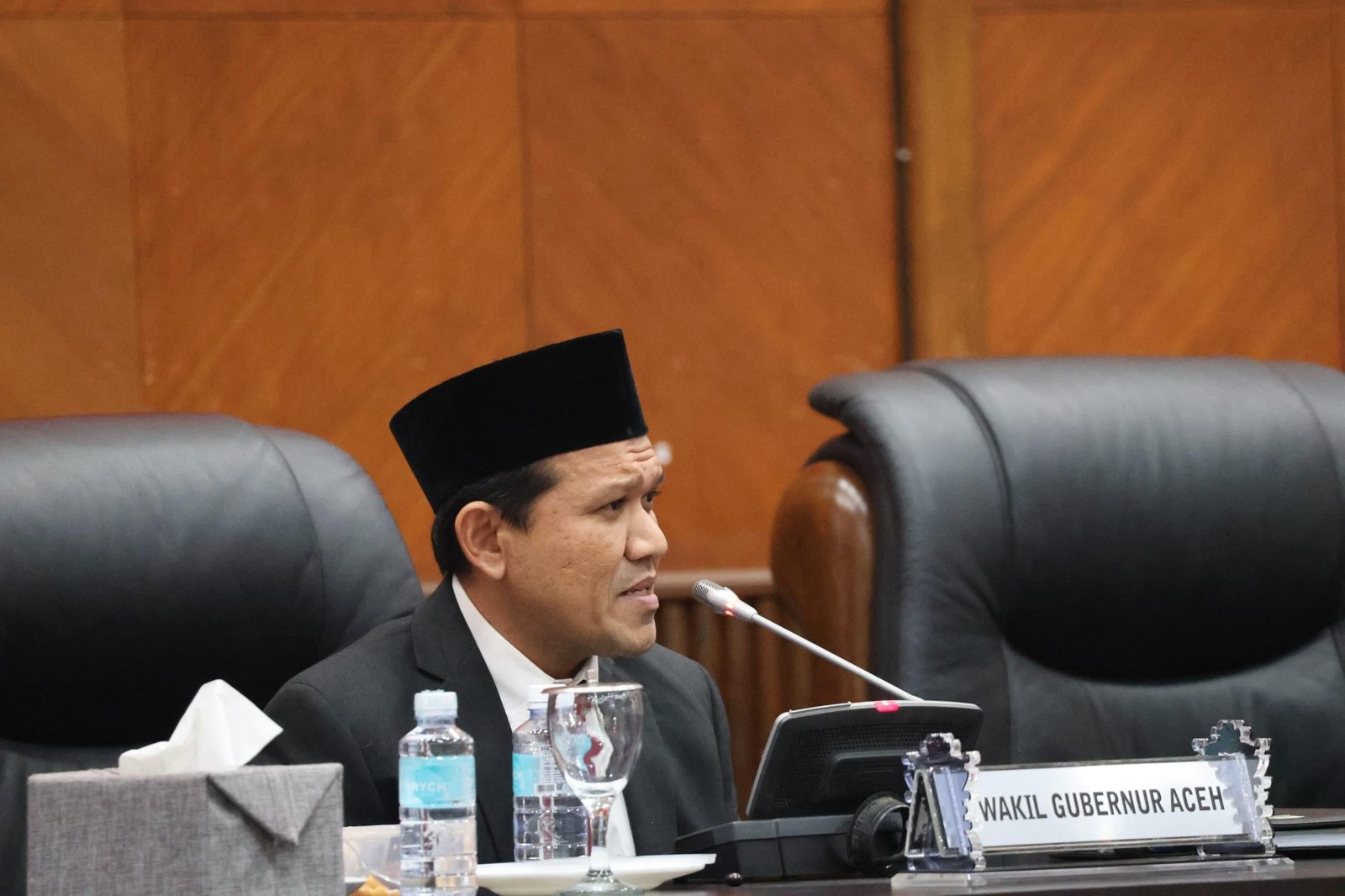 LM – Wakil Gubernur Aceh, Fadhlullah, menghadiri rapat paripurna penyampaian rekomendasi Dewan Perwakilan Rakyat Aceh (DPRA) terhadap Laporan Keterangan Pertanggung-Jawaban (LKPJ) Gubernur Aceh Tahun Anggaran 2024, di Gedung Utama DPRA, Senin, 26 Mei 2025.