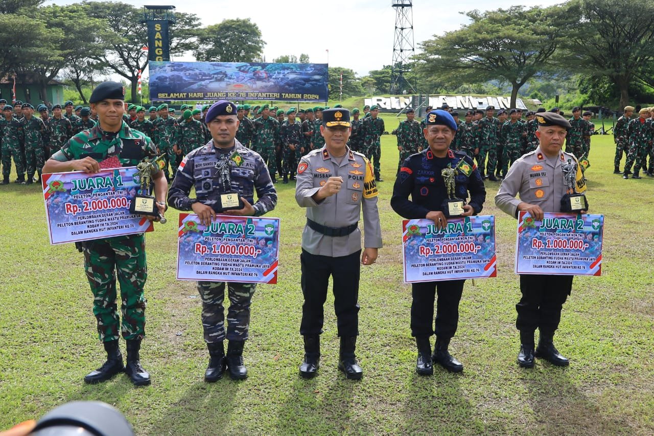 Pada upacara tersebut, juga dilaksanakan penyerahan piala dan hadiah bagi peserta pemenang lomba gerak jalan peleton beranting Yudha Wastu Pramuka Jaya Kodam IM tahun 2024, yang digelar dalam rangka peringatan HUT Ke-76 Infanteri.