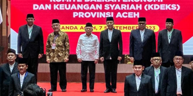 LM – Hari Kamis yang lalu, Aceh menyaksikan momen bersejarah dengan pengukuhan Komite Daerah Ekonomi dan Keuangan Syariah (KDEKS) Aceh. Acara ini dihadiri oleh Wakil Presiden RI, KH Ma’ruf Amin, yang menyampaikan pesan penting tentang pentingnya sinergi dan kolaborasi multipihak untuk menggerakkan ekonomi syariah yang kuat di Aceh. Kamis, 7 September 2023.